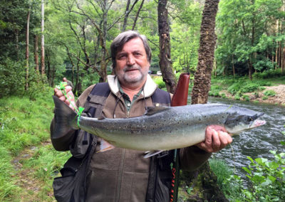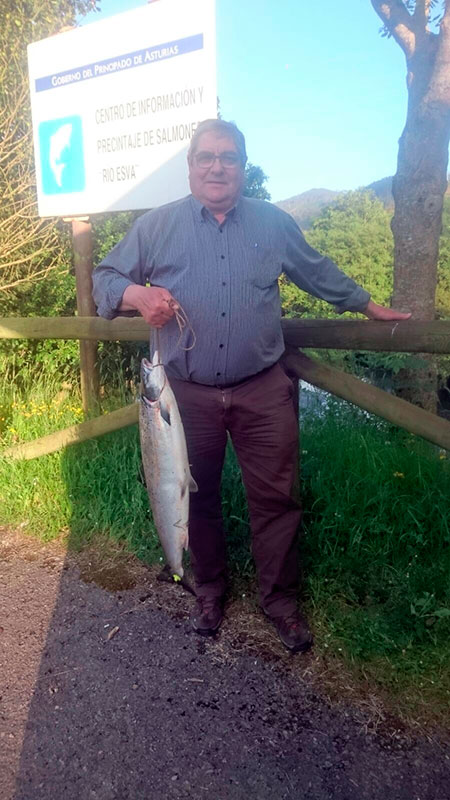Darío Lobato Sánchez, de Astorga, 5,5 kg a mosca en el coto de Puente Quinzanas. Salmón donado al proyecto Arca de Las Mestas del Narcea.
