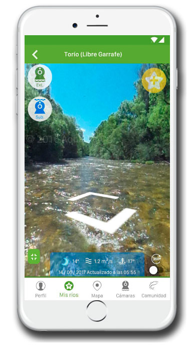 Otra de las funcionalidades más destacadas de la aplicación es la visión en directo del río. Gracias a las más de 30 cámaras en tiempo real, el pescador puede conocer en todo momento y con exactitud lo que está ocurriendo en el río, tanto dentro como fuera del agua.