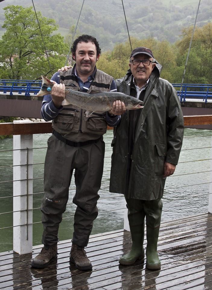 - El gijonés José Luis González, sacaba el campanu del Cares a las 8:45 horas. Este salmón de 4,3 kilos fue sacado en la zona libre a cucharilla.